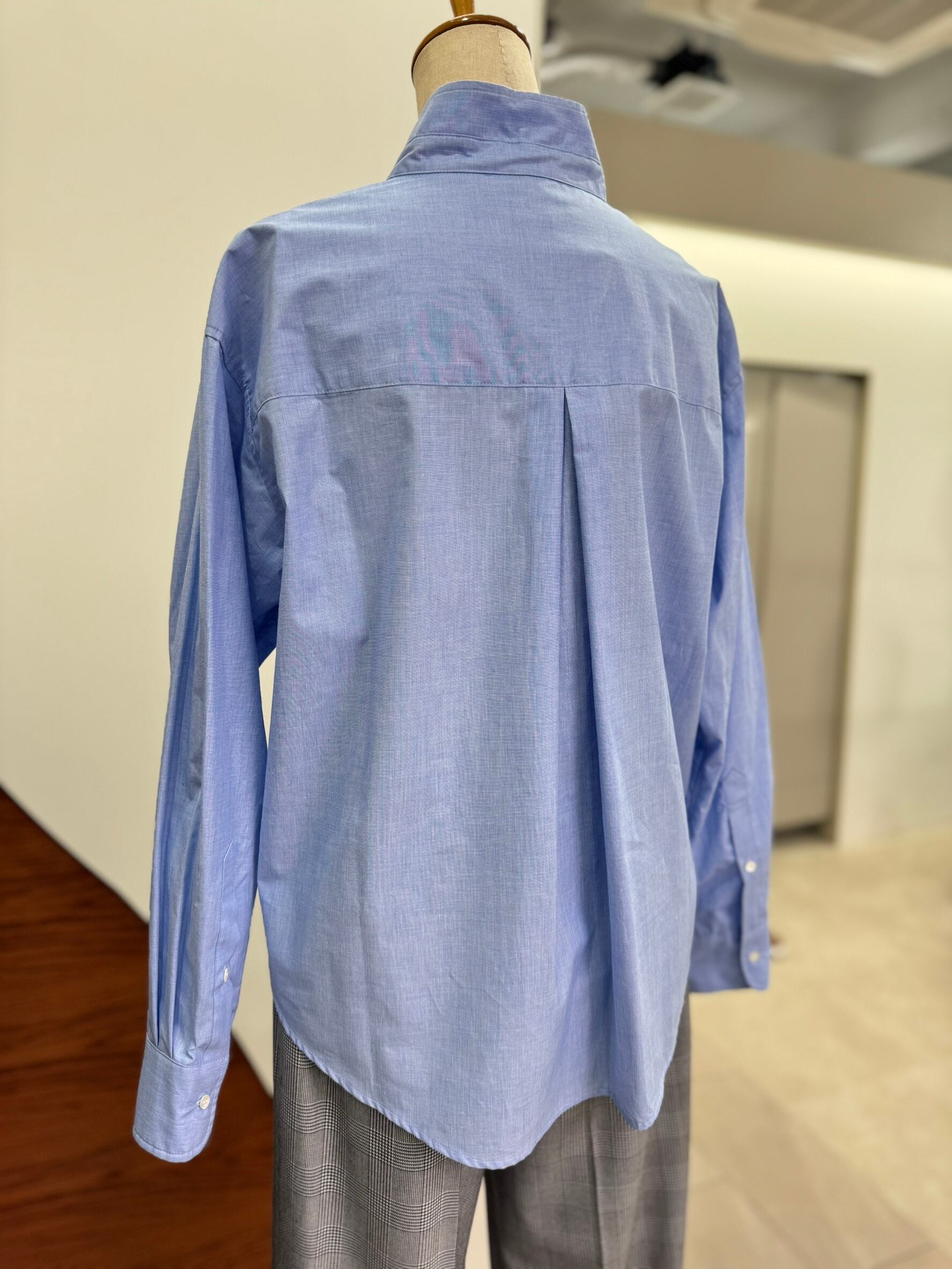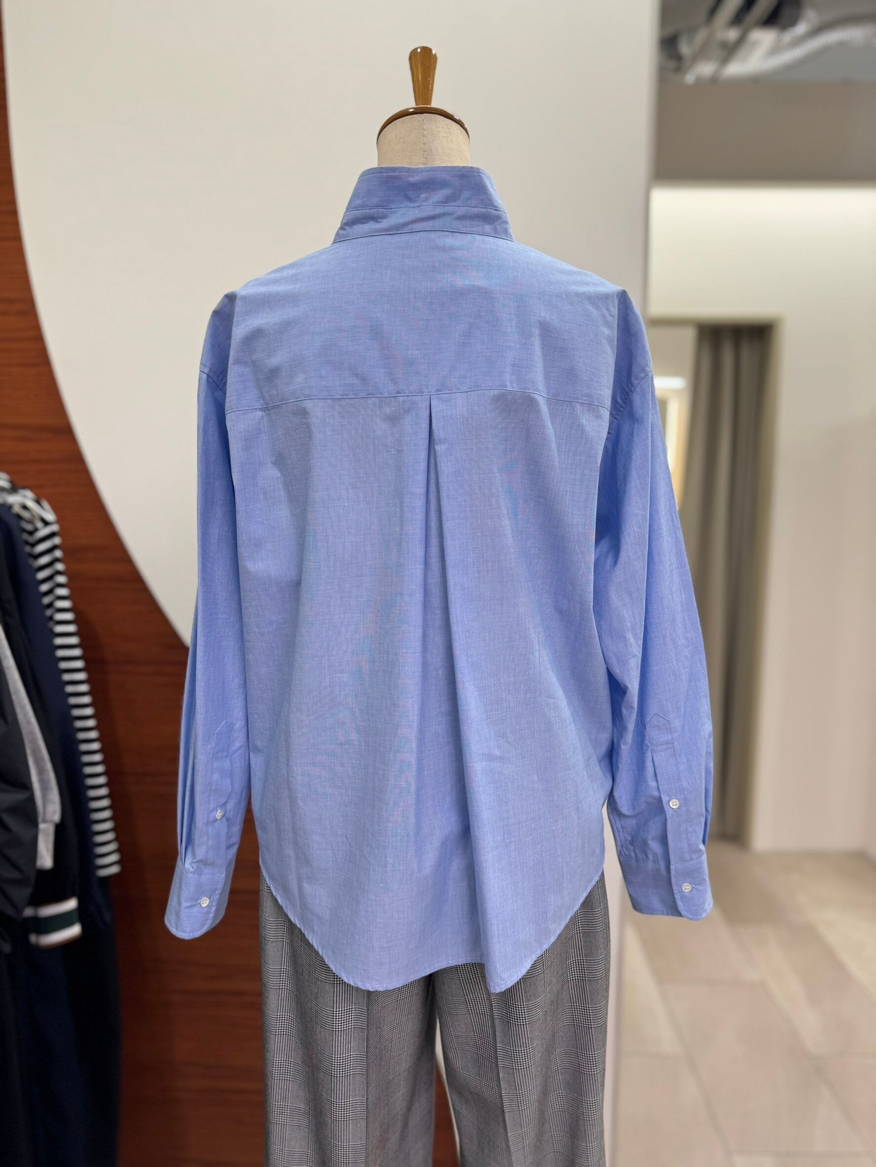 軽やかなライトブルーカラーが爽やかな印象を与える、日本製のコットンシャツです。