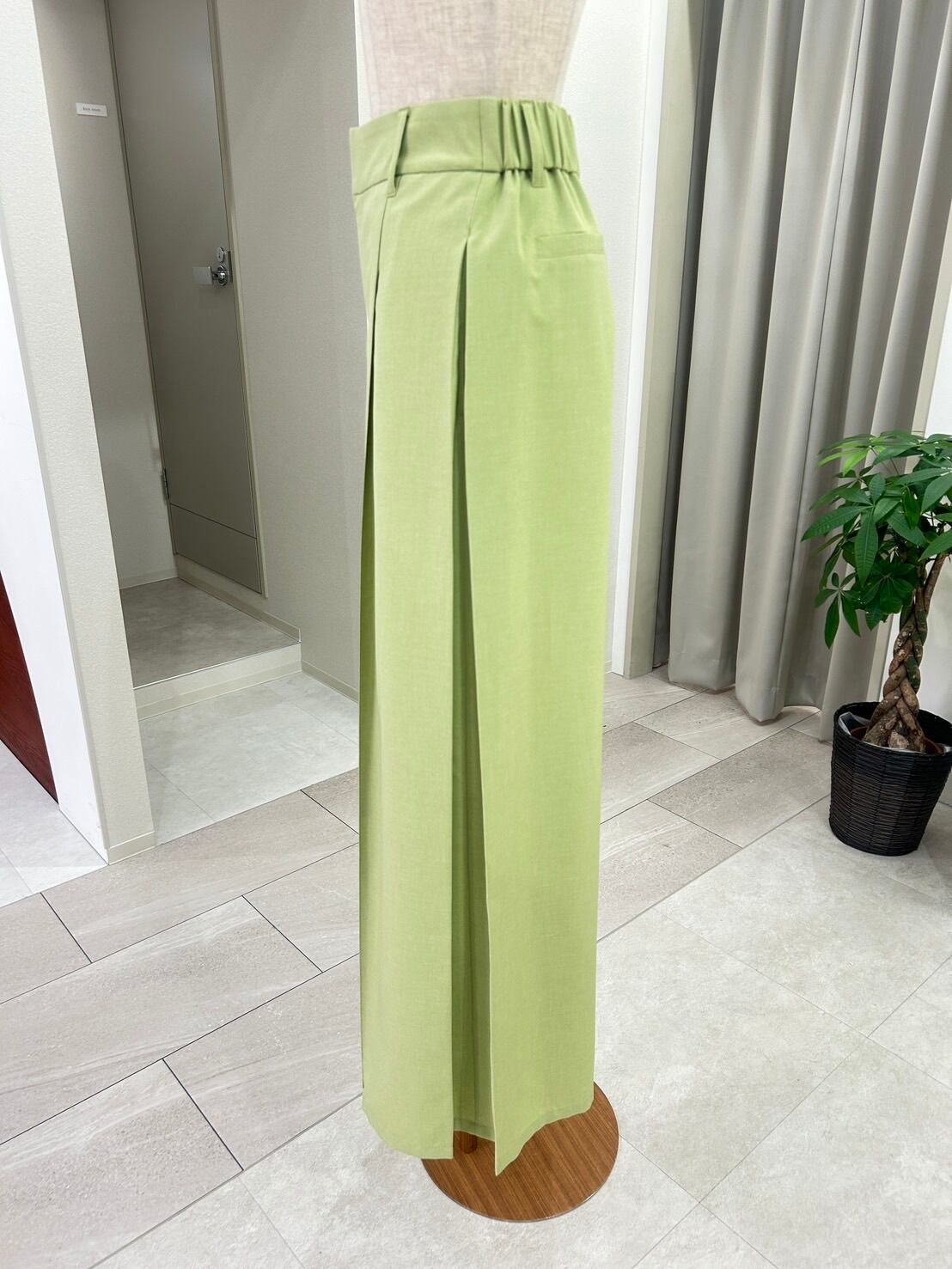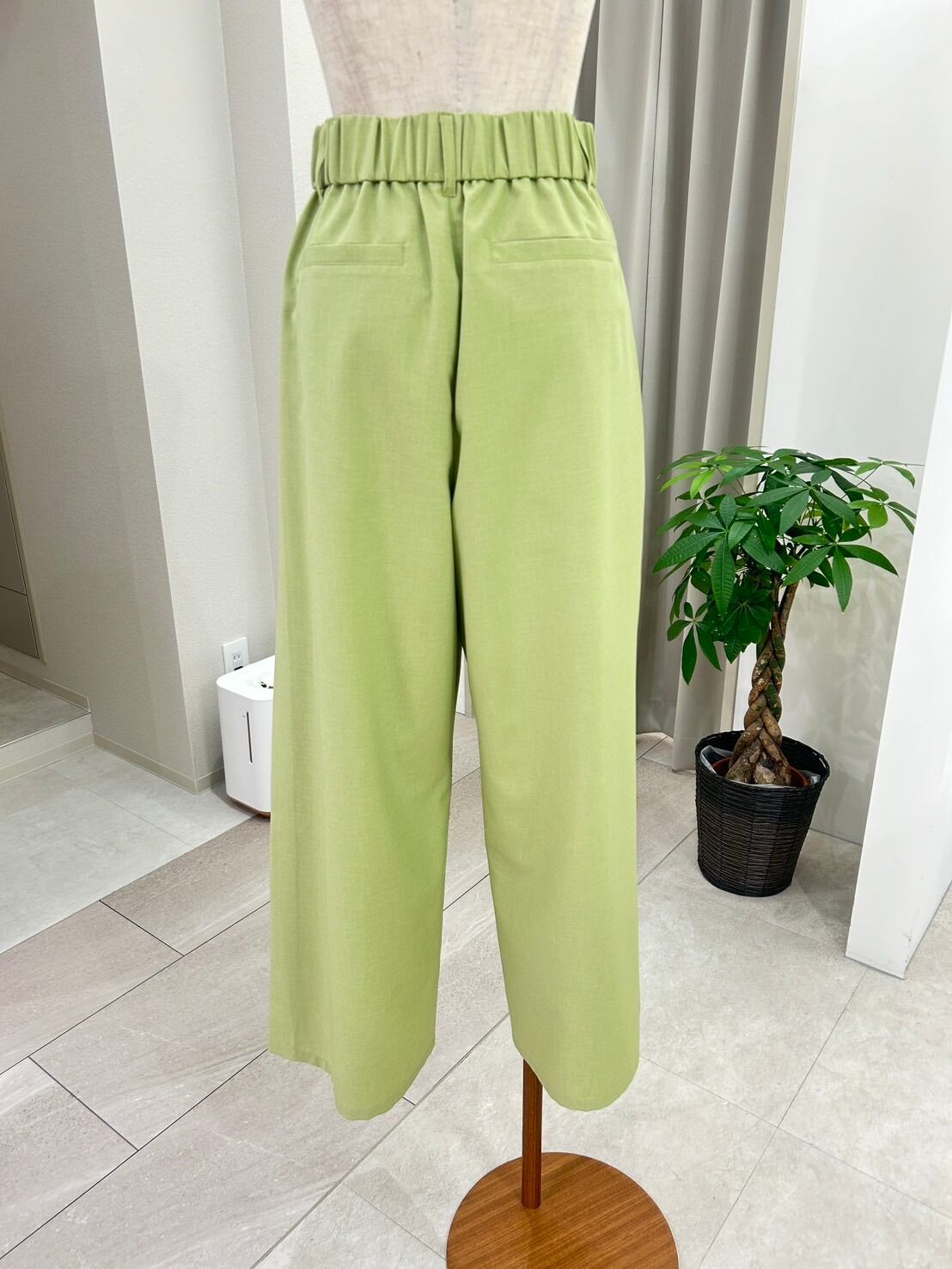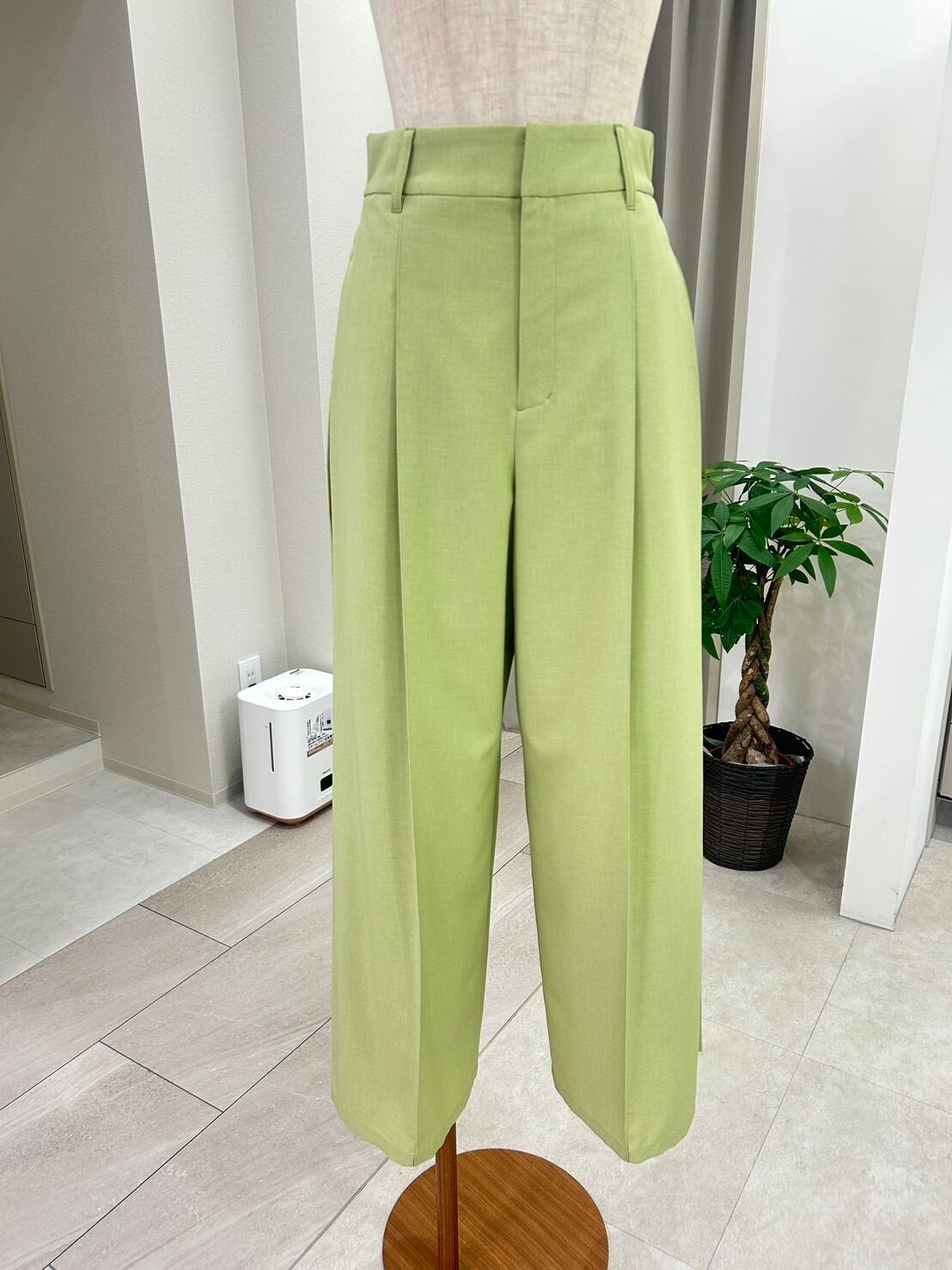 春らしい軽やかなカラーが目を惹く、上品なセミワイドパンツ。