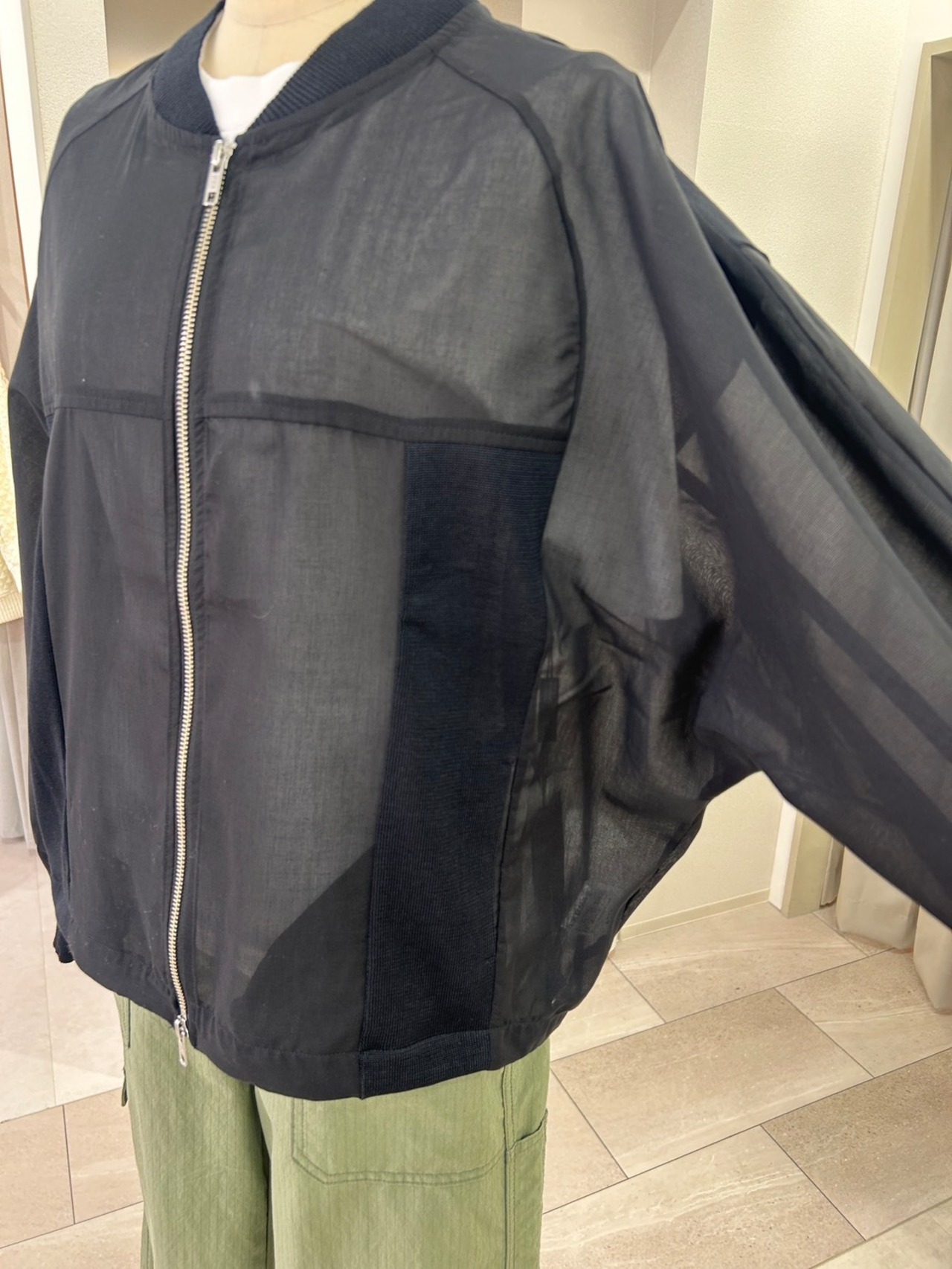 軽やかな透け感が魅力のシアーブルゾン。